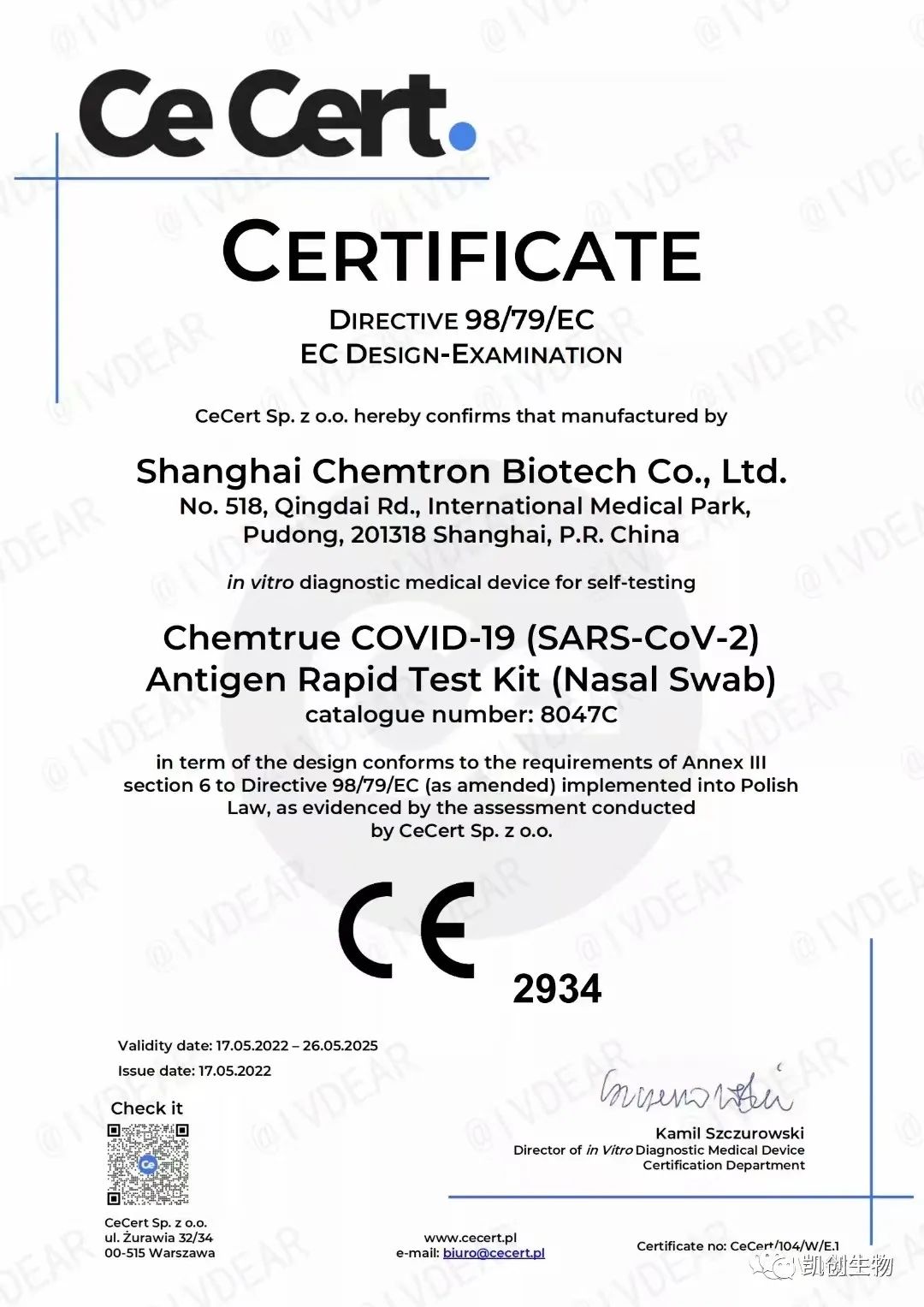上海凱創(chuàng)生物技術有限公司研發(fā)的新型冠狀病毒(SARS-CoV-2)快速抗原檢測試劑盒(免疫層析法)自測產(chǎn)品獲得歐盟CE準入資格!這意味著該自測試劑盒可在歐盟國家以及認可歐盟CE認證的國家進行銷售。
